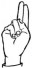 На ћирилици написано НЕБОЈША ГРУБНИЋ састоји се из 14 слова [?]. Исписано ћириличном једноручном азбуком за глувонеме: